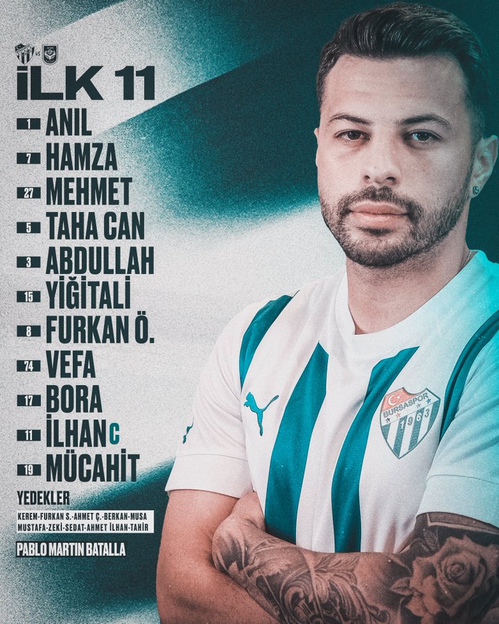 Bursaspor Teknik Direktörü Pablo Martin Batalla‘nın sahaya süreceği ilk 11 şöyle;