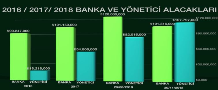 Kulübümüz borçlarını ödemek için tekrar borçlanmaktadır. Borçlar haliyle kartopu gibi artan bir ivme gösteriyor. Bir dönemler borcu azaltmak konuşulmaktayken şu an Türk Futbol Sektöründe borcu stabil tutmak en azından artışı durdurmak konuşulmaktadır. Son 3 yılda yapılan zararlar yukarıda gösterilmiştir. Gelirden daha fazla gider yaratılması borcun artması neden olmuştur. SONUÇ OLARAK; GİDER KONTROLÜ SİSTEMİNİN DOĞRU İŞLETİLMESİ GEREKTİĞİ AÇIKÇA ORTADIR. Borcumuzun %45%50 lik kısmı döviz borcu olması sebebi ile 2018 yılı içindeki kur artışı da giderlerin artmasında etken olmuştur.