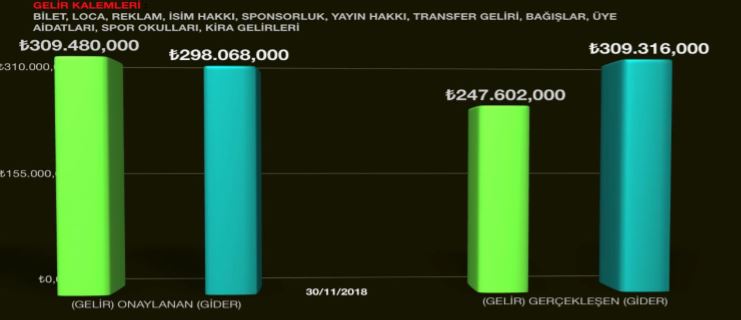 Geçen yıl bizden onayı alınan bütçede neredeyiz bu yıl ne bütçelenmiş ona bakmak gerekirse 2018 Yılı için onaylanan gelir bütçemiz 309.480.000TL olup 30.11.2018 tarihi itibari ile gerçekleşen rakam 247.602.035 TL’dir. 2018 yılı için hazırlanan ve onaylanan gider bütçesi 298.068.000TL iken gerçekleşen gider (30.11.2018 ) 309.316.192 TL’dir. 2018 yılı için 11.412.000TL kar yapacağız derken 30.11.2018 itibari ile -61.714.157TL Zarar etmişiz. Burada şüphesiz kur artışından kaynaklı gider tarafında negatif etkisi var zira toplam borcumuzun yaklaşık %48-%52’lik kısmı döviz borcudur. Ancak, biz geçen yıl bütçe yapmamışız. Önemli olan bütçeye gelir giderden fazla çıksın diye bir rakam yazmak değildir.