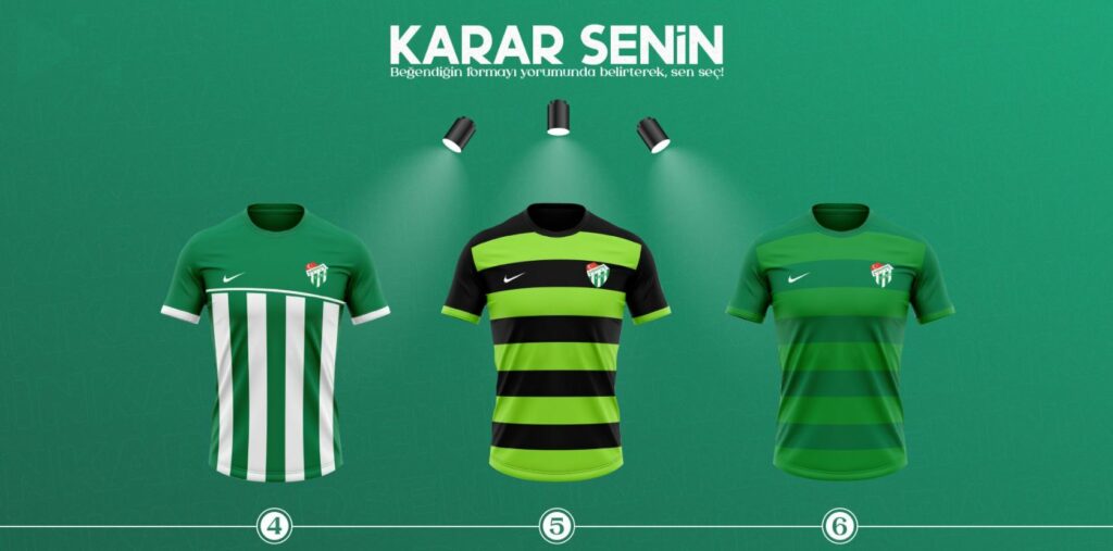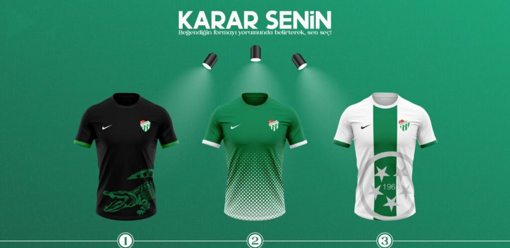 Formalar da yeşilin her tonu var. Bu yanlış. Bize özel bir yeşil de karar kılmalıyız. Dünyanın neresinde olursa olsun takım sahaya çıktığında renk ve model olarak işte BU BURSASPOR! denmeli. Bursaspor armalı çuvalı bile almak boynumuzun borcu. Bu başka birşey. bize yakışan, formasından, tribününe kadar farklı ve özellikli olabilmektedir…