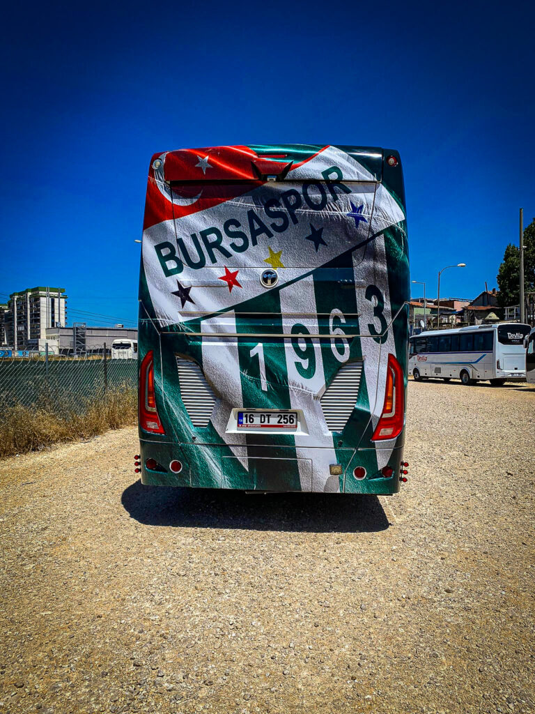 Geride bıraktığımız iki sezon haciz riski nedeniyle Bursaspor giydirmeli otobüsleri kullanamayan ve Büyükşehir Belediyesi’nin tahsis ettiği beyaz otobüslerle seyahat etmek zorunda kalan yeşil-beyazlılarda Enes Çelik yönetimi otobüs işini de özdü.