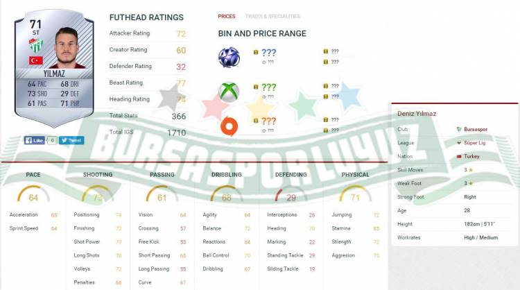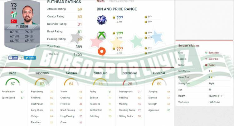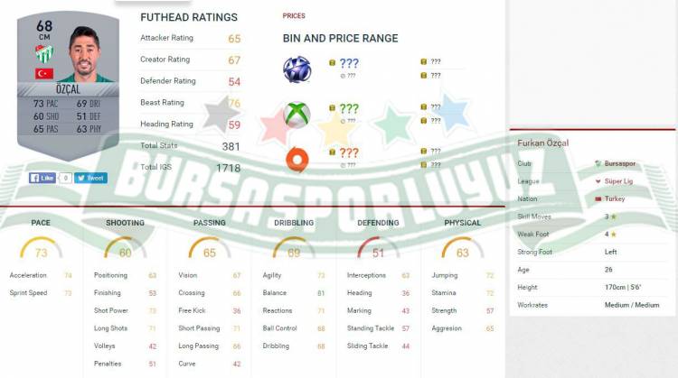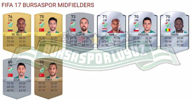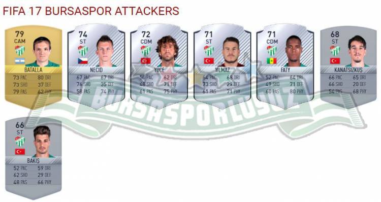 Oyun platformlarının en çok oynanan futbol oyunlarının başında gelen FIFA serisinin son oyunu "FIFA 2017" yayınlandı. Oyundaki Bursaspor kadrosu ve oyuncuların özelikleri ise şöyle