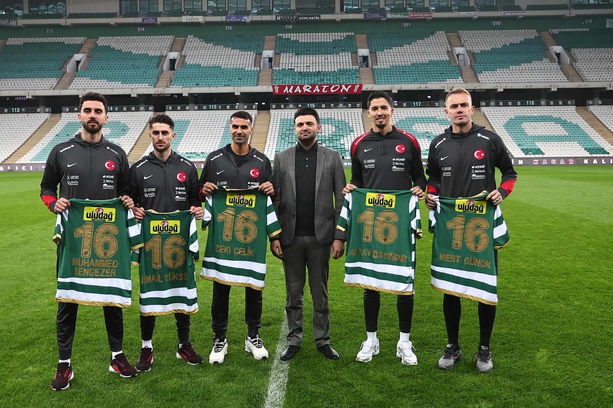 Bursaspor Kulübü Başkanı Enes Çelik, milli maç için Bursa’da bulunan Bursalı oyunculara Bursaspor forması hediye etti.