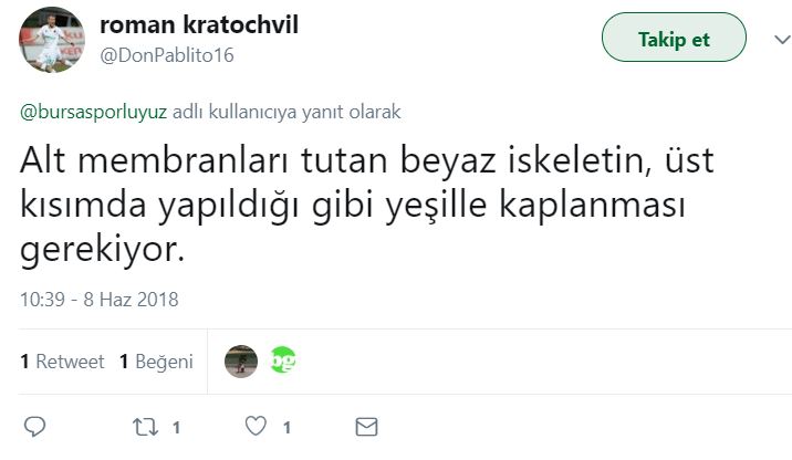 Renkdaşım sana cevap yazmıyorum. Benim yazım. ENES ÜNAL a. Evladımız bu gün ameliyat olmuş kasığından ağrılarından ötürü. Ben ona tüm BURSASPOR lular adına geçmiş olsun diliyorum Hadi çocuk bir an önce iyileş gollerine devam et ne duruyorsun. Arkanda koskoca BURSASPOR taraftarı var ben RENKDAŞLARIM adına geçmiş olsun diliyorum. …