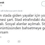 Benim de taraftarımızdan bir ricam var. Lütfen maç öncesi stadyum çevresinde sokak aralarında içki içip, şişelerinizi çöplerinizi ortalıkta bırakmayın.