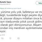 En büyük eksiklik ulaşım eksikliği normalde 300 metre olan stad-metro arası mesafe yolun uzatılması sonucu 2 km. En büyük sorun bu maça gidip gelince turşu gibi oluyoruz.
