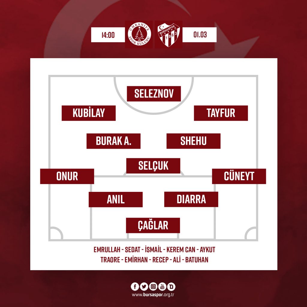 Bu kadro yanlış sedat kesilmez diarra anılın yerıne olmalı anıl çok hata yapıyor ve asla Selçuk olmaz bu takımda hiç mücadele etmiyor çok top kaybediyor ve son olarak Cüneyt asla sağ bek olmaz inşallah puanla döneriz işimiz çok zora girdi ama ibrahim hoca şampasını önüne koyucak Kubilay solda olmaz aliye hiç şans vermiyor ve atanosova kazanamazsak sıkıntı şans bizimle olsun
