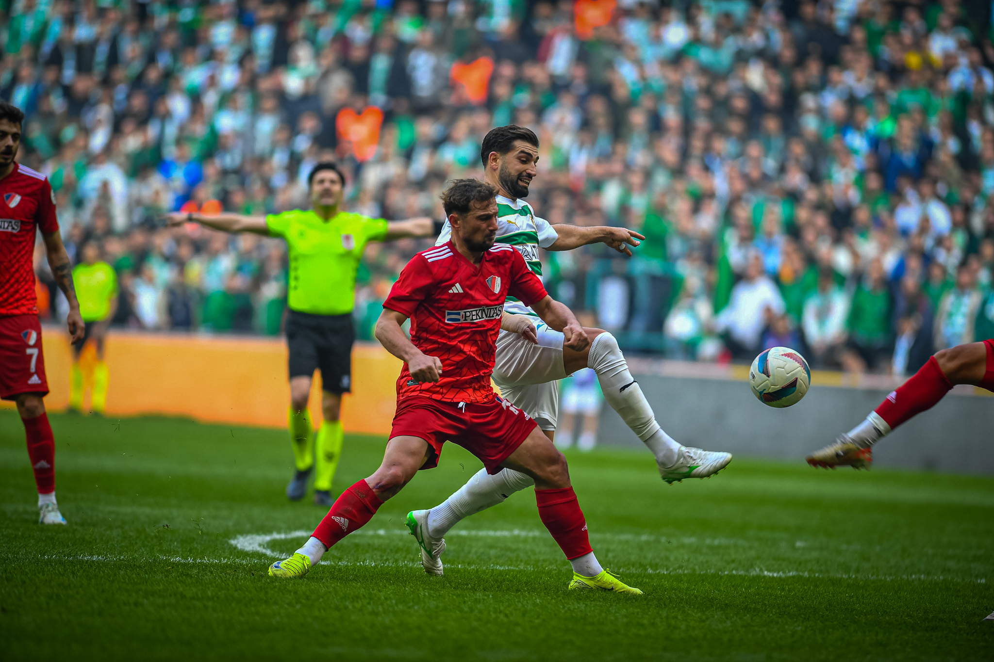 Maçtaki ilk isabetli şutu eski Bursasporlu Bilal Şeflek 54. dakikada çekerken, kaleci Anıl topu kornere tokatladı.