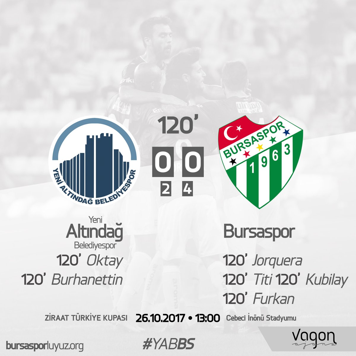 Ziraat Türkiye Kupası 4. turunda Ankara’da Yeni Altındağ Belediyespor ile karşılaşan Bursaspor 120 dakikada gol kaydedemezken penaltı atışlarında turu geçebildi.