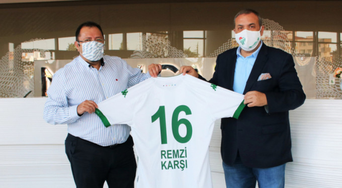 Medicana Bursa Hastanesi Genel Müdürü Dr. Remzi Karşı‘yı ziyaret eden Kamat, desteklerinden dolayı teşekkür etti. Erkan Kamat‘ın üzerinde isminin yazılığı olduğu formayı hediye ettiği Dr. Remzi Karşı da Erkan Kamat‘a yeni görevlerinde ve uzun lig yolculuğunda başarılar diledi.