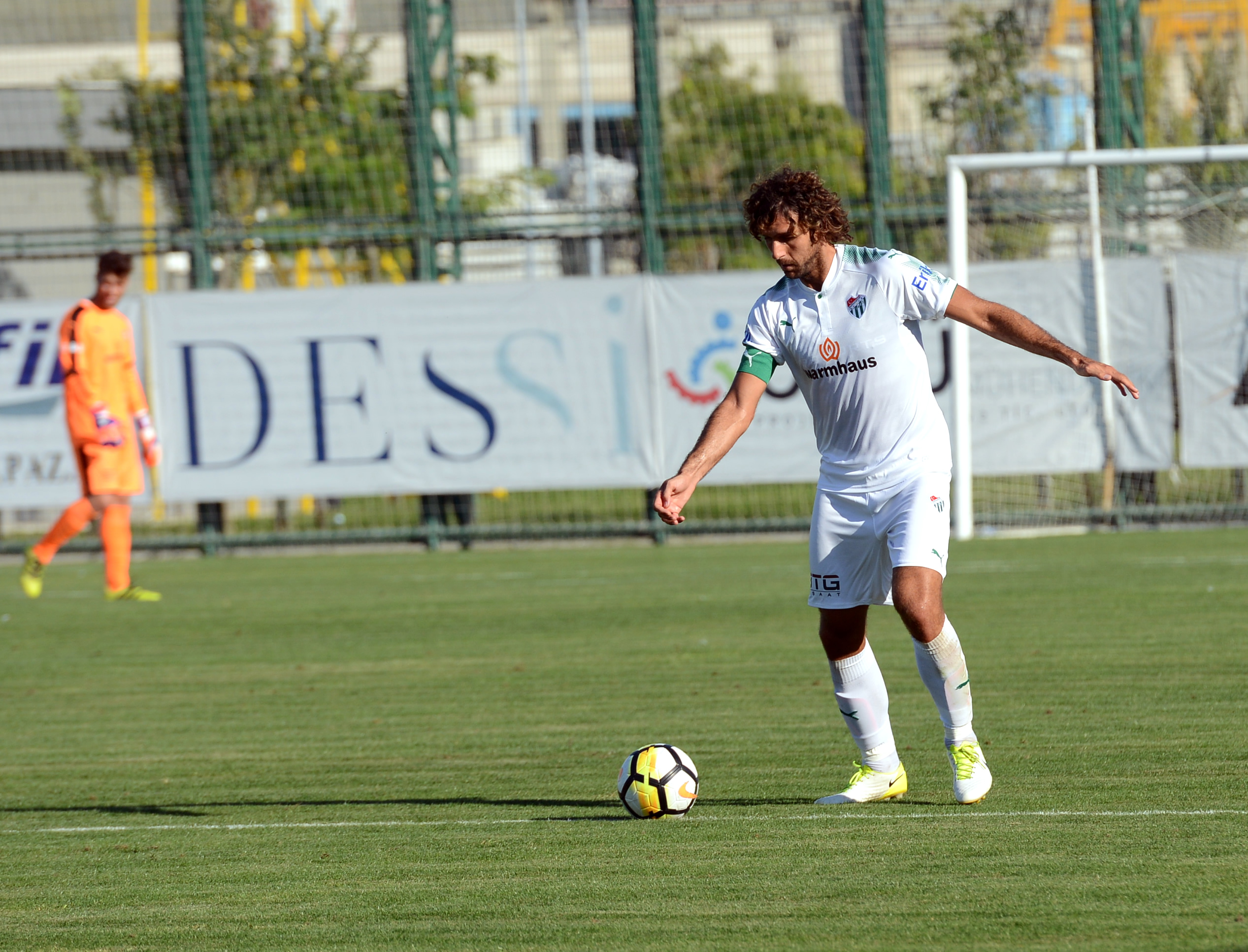 Bursaspor'un tecrübeli orta saha oyuncusu Merter Yüce, sahaya kaptan olarak çıktı.