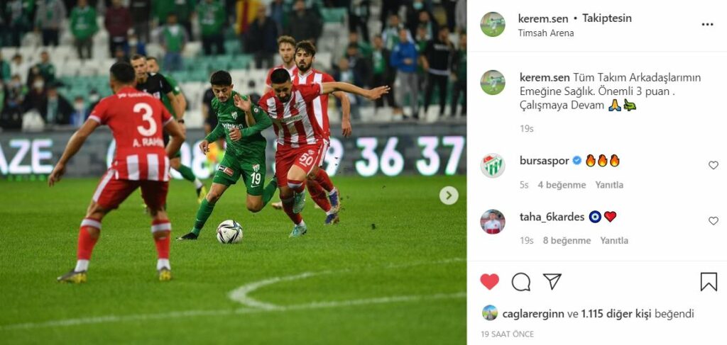 Kerem Şen sosyal medya hesabı instagram‘dan “Tüm takım arkadaşlarımın emeğine sağlık. Önemli 3 puan. Çalışmaya devam.” ifadelerini kullandı.