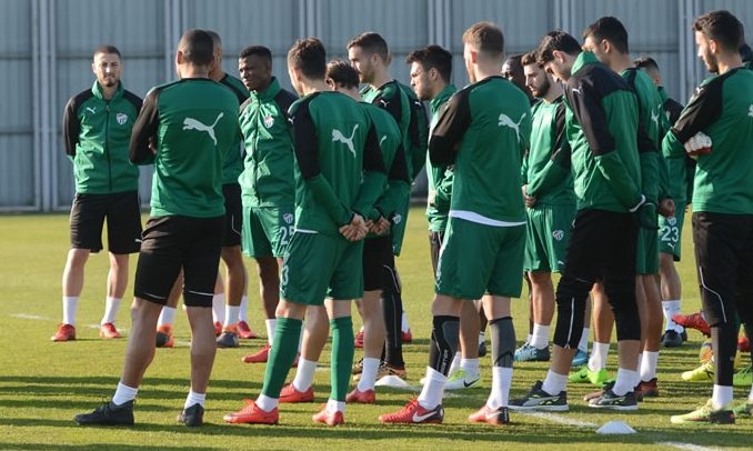 Bursaspor Teknik Direktörü Paul Le Guen, antrenman öncesi futbolcularıyla yaklaşık 10 dakika toplantı yaptı.