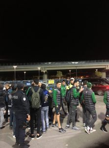 Zorlu maçta görev alan güvenlikler ile 2 takımın teknik heyeti ve bazı oyuncuların serinkanlı kalarak araya girmesiyle olaylar biraz olsun yatıştı ancak daha sonra dışarısı karıştı. İlk olarak Hüseyin Atakan Üner ve yanındaki arkadaşı Muzaffer Kocaer, Emirhan Aydoğan‘a herkesin gözü önünde küfür etti. Bunun üzerine Emirhan Aydoğan da oldukça sinirlendi. 2 takım otobüsünün arasında ortalık bir daha geri-lirken, Anıl Karaer ve Özer Hurmacı başta olmak üzere diğer oyuncular da olaya dahil oldu. Gerginliğin arttığı dakikalarda polisin araya girmesiyle bir kez daha 2 takım oyuncuları sakinleşti. Son olarak İzmir ekibinin doktoru Gürbey Kahveci, Anıl Karaer‘den özür diledi ve hem Bursasporlu hem de Altınordulu futbolcular otobüslerine binerek stattan ayrıldı.