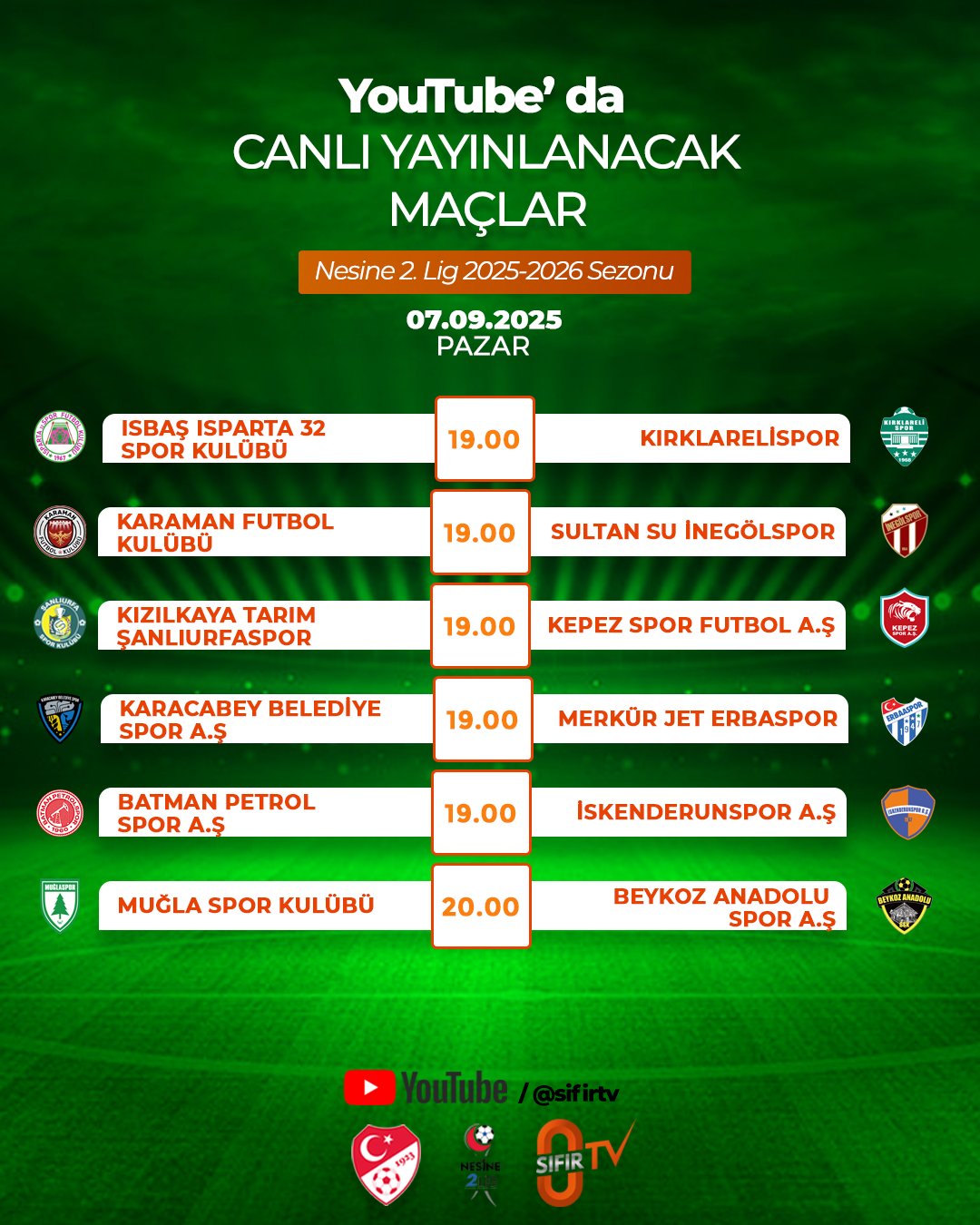 Bi Kanal Youtube kanalı da, 2.Lig’deki bir diğer Bursa ekibi Karacabey Belediyespor’un 7 Eylül Pazar günü saat 19.00’da oynayacağı Merkür Jet Erbaaspor karşılaşmasını yayınlayacak…