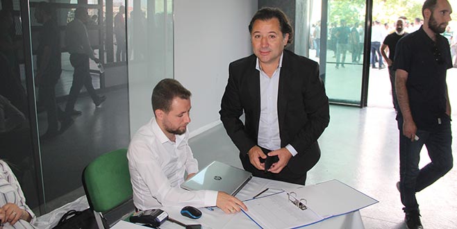 Başkan adayı Mesut Mestan, ilk oturuma gelen bütün üyelerle tek tek ilgilendi.