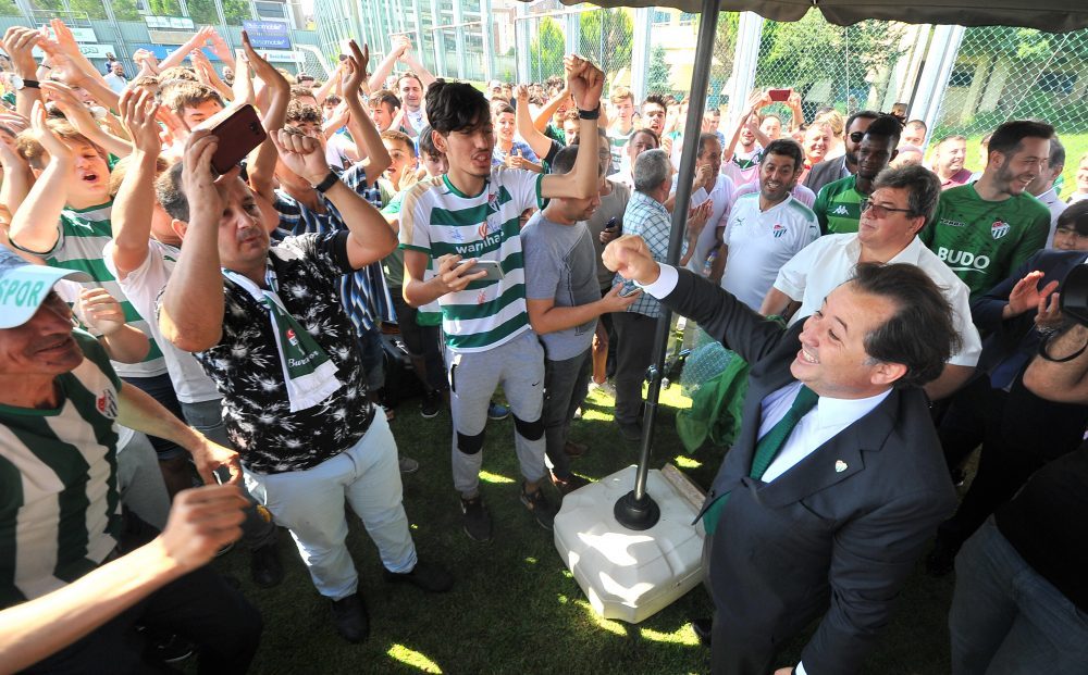 Bursaspor Kulübü Başkanı Mesut Mestan, Özlüce İbrahim Yazıcı Tesisleri’nde gerçekleştirilen imza töreninde taraftarlar ile üçlü çekti.