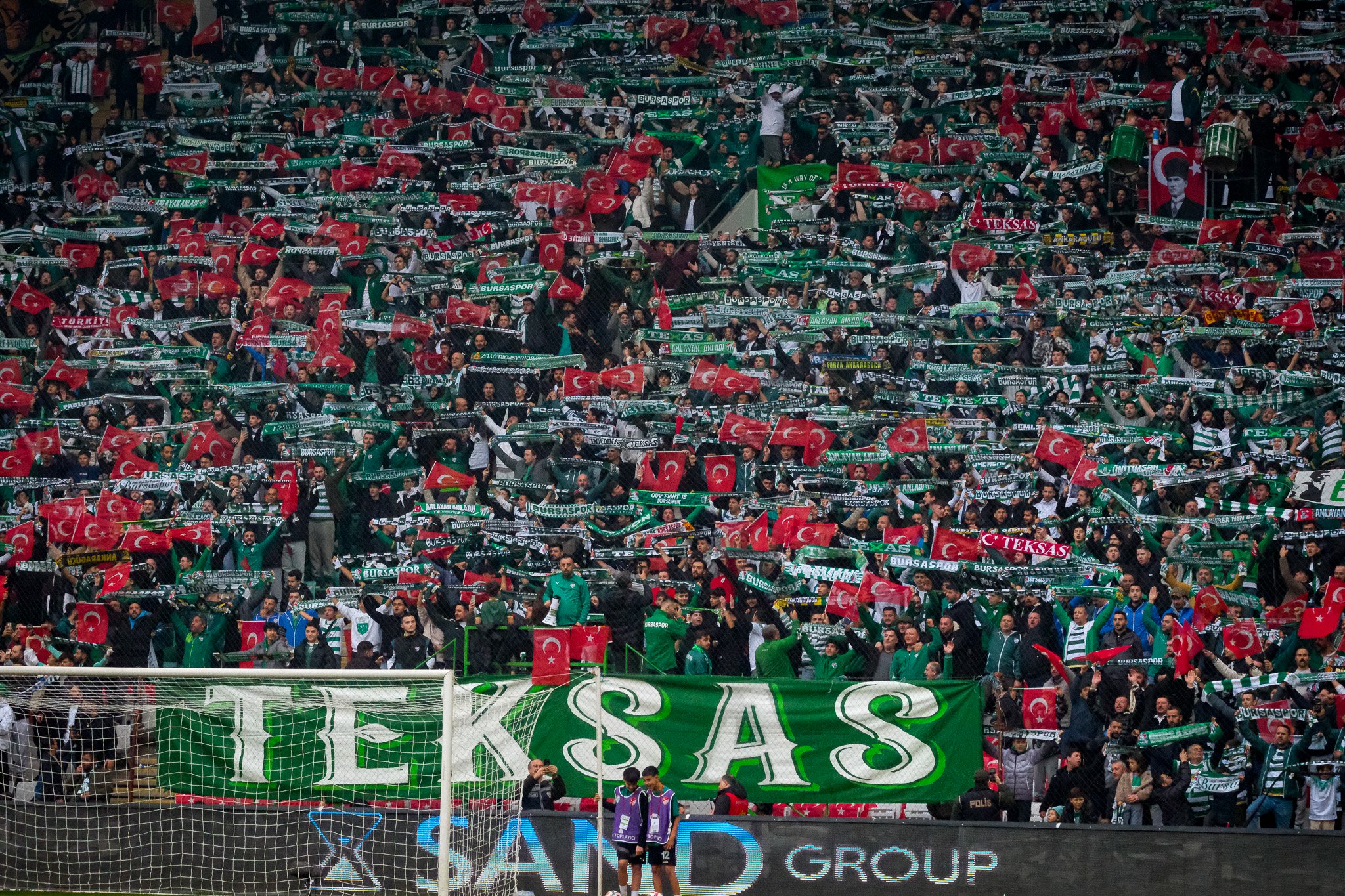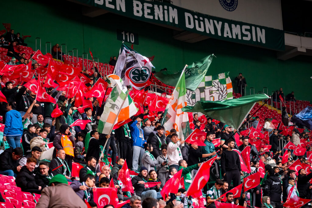 Maç öncesinde tribünlere dağıtılan yaklaşık 40 bin Türk bayrağıyla birlikte stat, kırmızı-beyaz ile yeşil-beyaz renklerin buluştuğu görsel bir şölene sahne oldu.