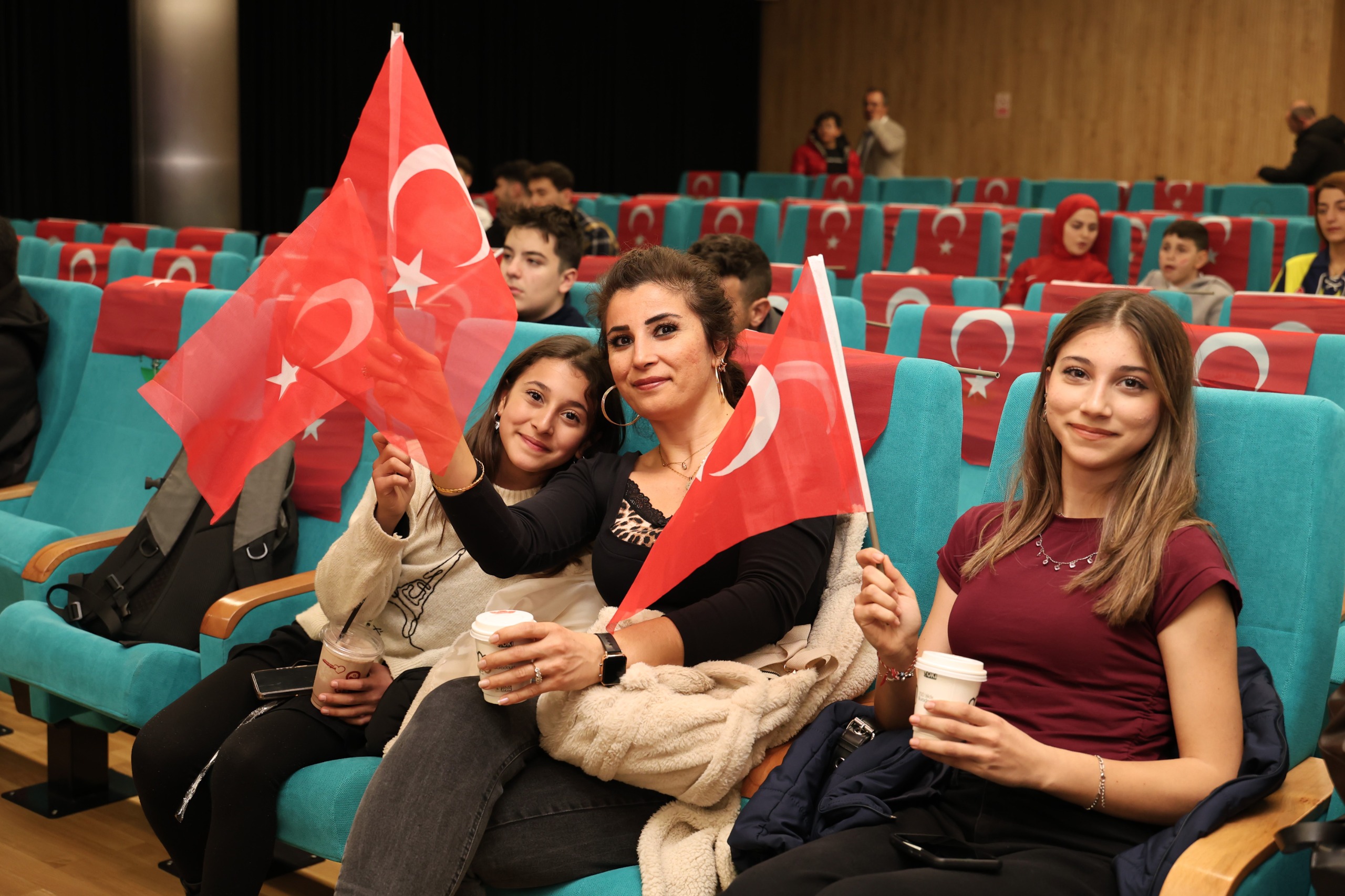 Maç saatinden önce salona gelen vatandaşlar, ellerinde Türk bayrakları ve milli formalarla tribün atmosferini aratmayan görüntüler oluşturdu.