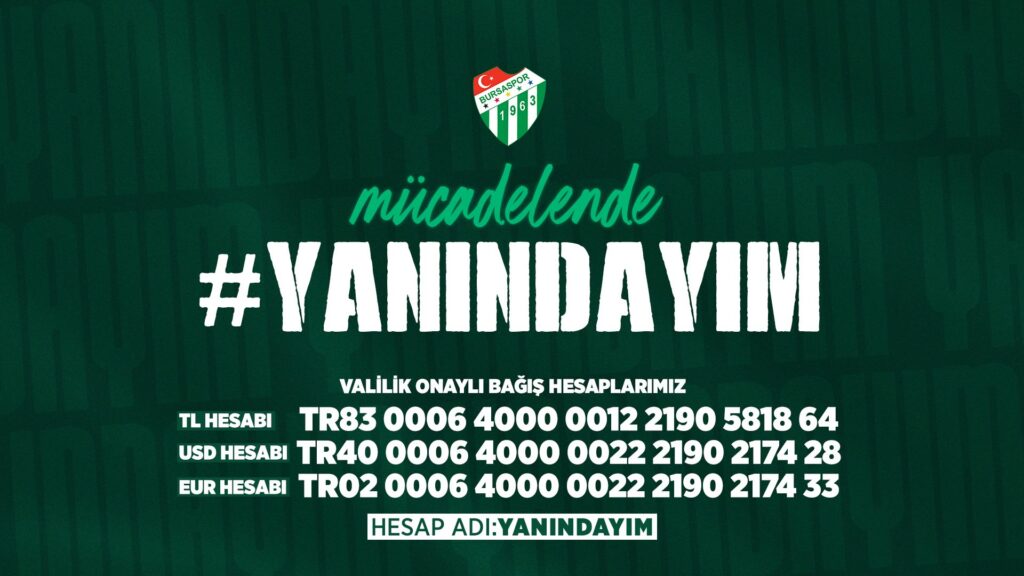 Bursaspor’da Enes Çelik yönetimin Bursa Valiliği onaylı başlatacağı kampanyanın ismi Mücadelende #Yanındayım başlığı ile hayata geçirilecek.