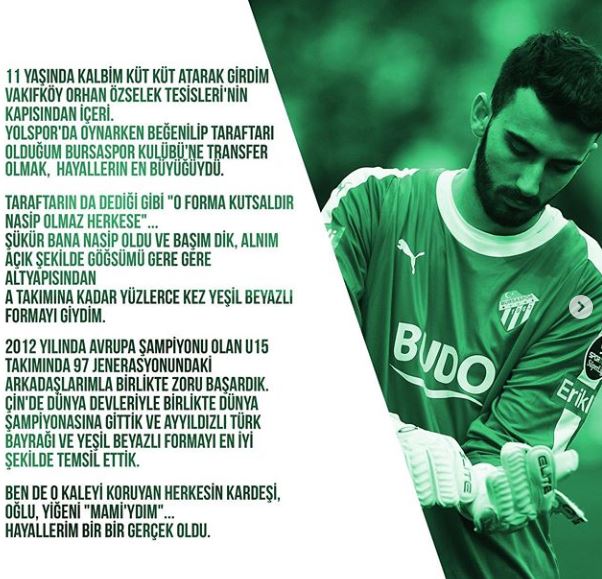 19. Bahtın açık şansın bol olsun nereye gidersen git Bursaspor’un alt yapısında yetiştin dicekler. Bu da insan olana yeter.. Sen gittin diye Bursaspor küçülmez … Yeterki karakterli olun şansında bahtında açık olsun ..
