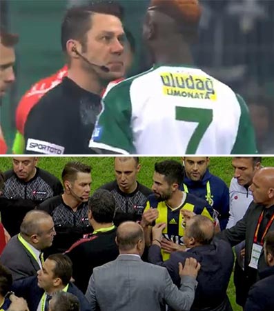2. Barışa da bana koşarak geldin diye sarı kart verdi.Konusurken de ağzından “BANA DOĞRU KOSAMAZSIN” dediği net sekilde gozukuyor.Baska maçlar da kendilerine yapilmadik kalmiyor.Bize gelince bir artistlik basıyor.