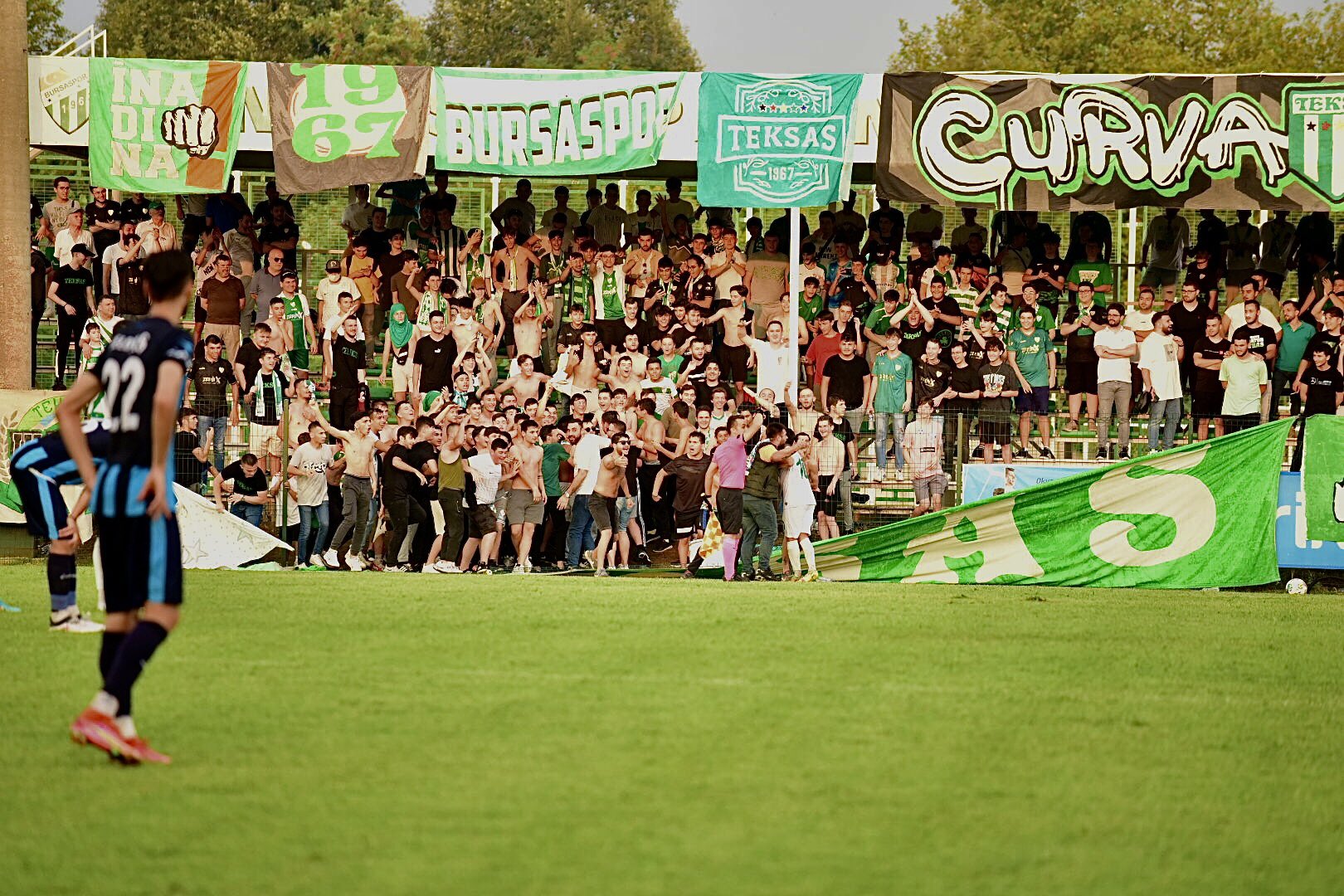 Taraftar sahaya inmedi demirler çöktü boş yapmayın