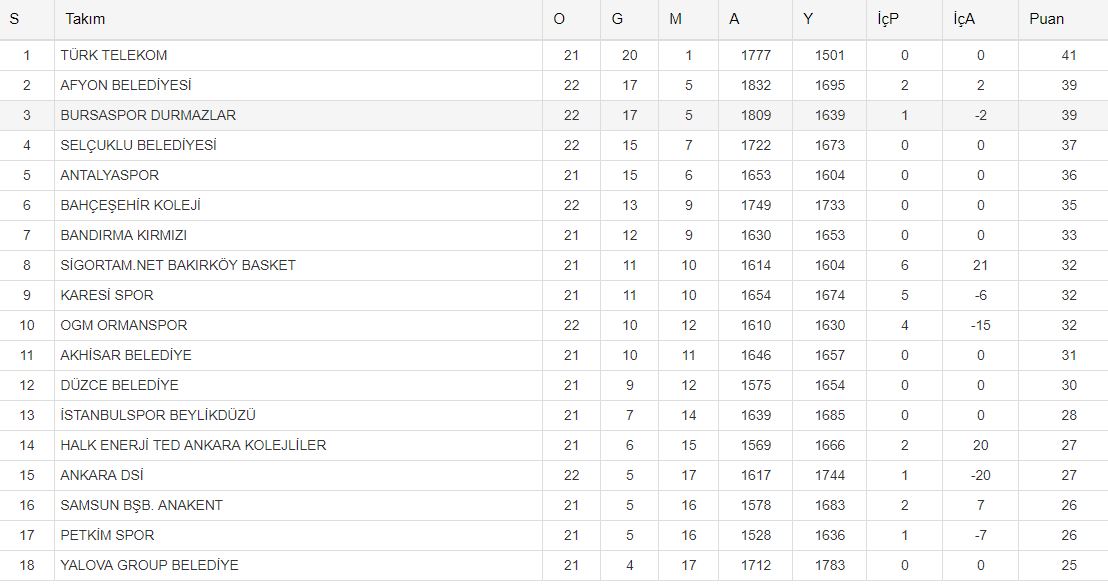 OGM Ormanspor 57 – 59 Bursaspor Durmazlar (Üçüncü Çeyrek Sonucu)