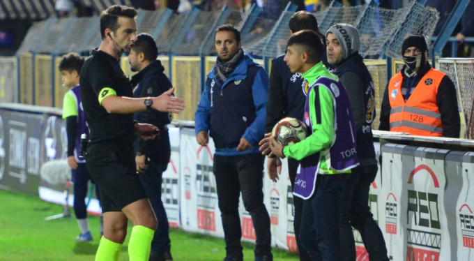 Maç boyunca top toplayıcı çocukların Bursasporlu futbolculara topu geç vermesi üzerine karşılaşmanın hakemi Kadir Sağlam çocukları uyarmak zorunda kaldı.
