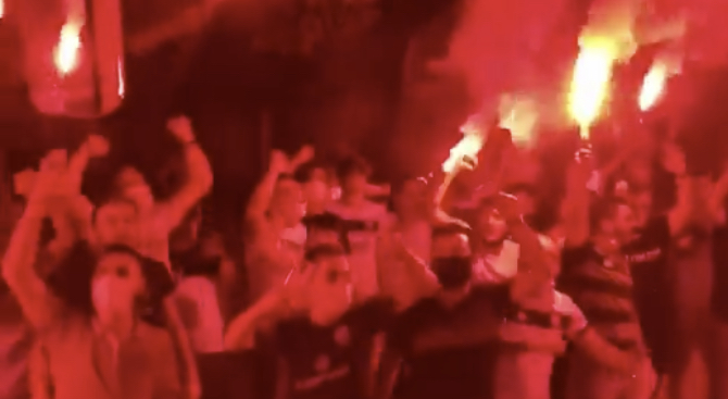 Takımı tesislerin gelişinde karşılayan Bursasporlu taraftarlar yaktıkları meşaleler ile görsel bir şov sundu.