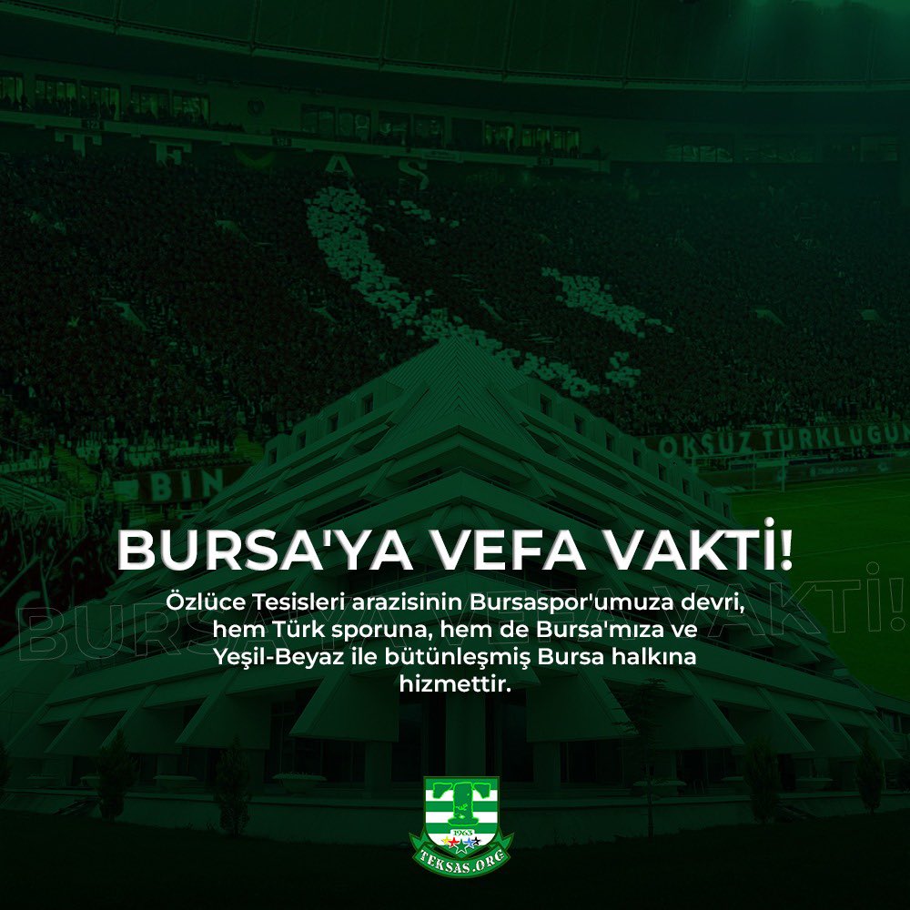 Teksas taraftar grubu sosyal medya hesabından yaptığı paylaşımda, ‘Bursaspor’a Vefa Vakti’ başlığı altında Özlüce Tesisleri’nin kulübe devri için çağrıda bulundu…