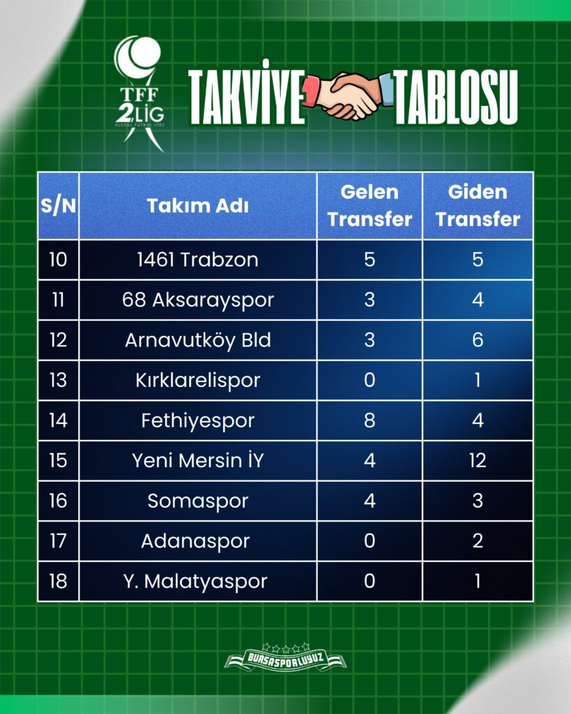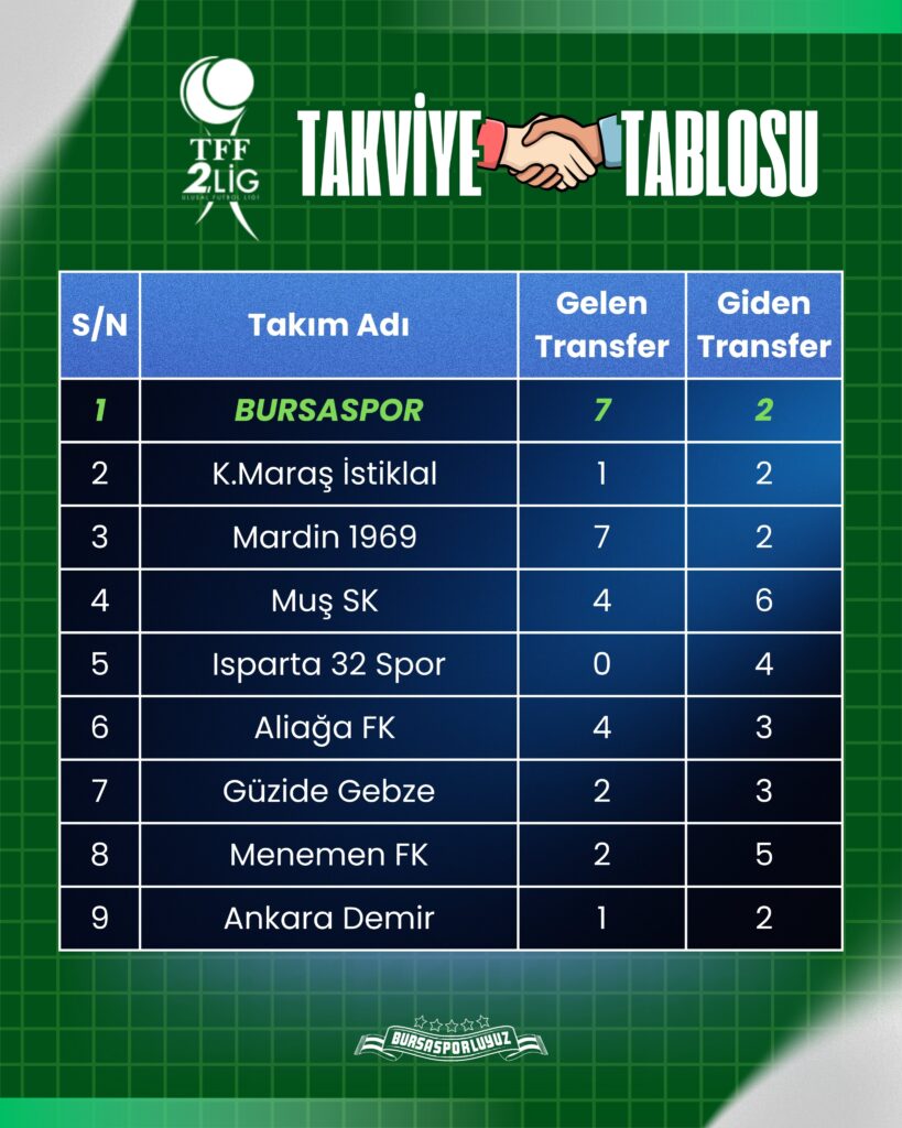 Bursaspor‘un şampiyonluk mücadelesi verdiği ligde diğer takımlar da kadrolarını güçlendirmek adına transfer yaptı.