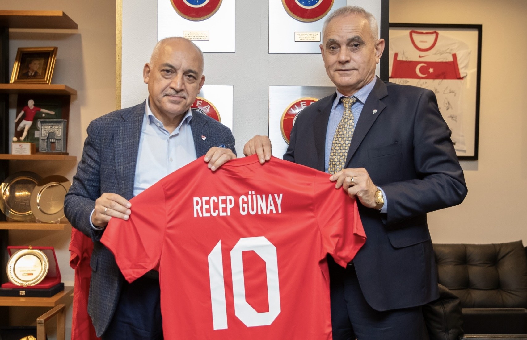 Bursaspor Başkanı Recep Günay ve Futbol Şube Sorumlusu Sedat Topaloğlu TFF Başkanı Mehmet Büyükekşi'yi ziyaret etti.