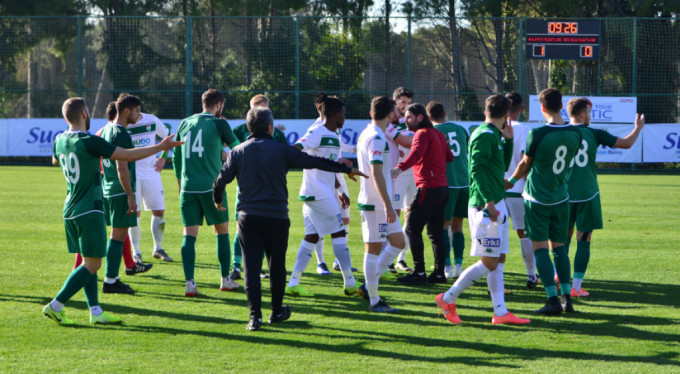 Konyaspor - Bursaspor karşılaşmanın 11'inci dakikasında saha karıştı.