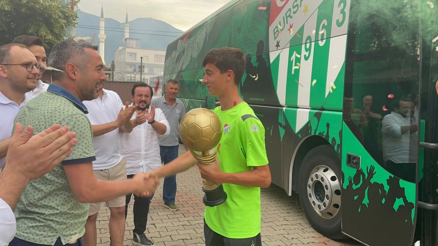 Elit U14 Ligi finalinde Galatasaray'ı 2-1 yenerek Türkiye Şampiyonu olan Bursaspor U14 Takımı Vakıfköy'de coşkuyla karşılandı.