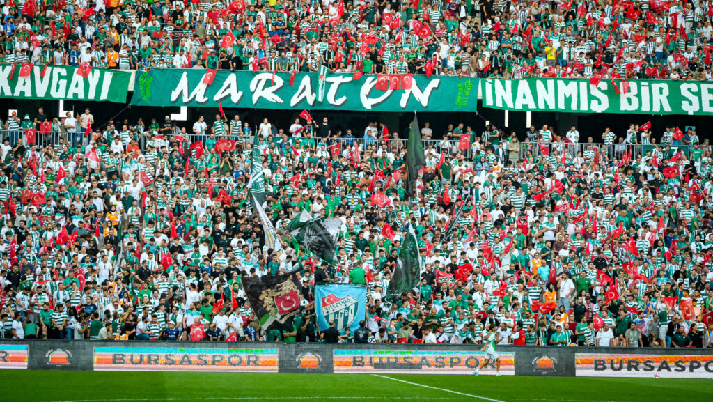 Bursaspor taraftarı, 30 Ağustos Zafer Bayramı’nı Atatürk Spor Kompleksi Matlı Stadyumu’nda coşkuyla kutladı. Teksas Grubu’nun tribünleri Türk Bayrakları ile donatması görsel bir şölen oluşturdu.