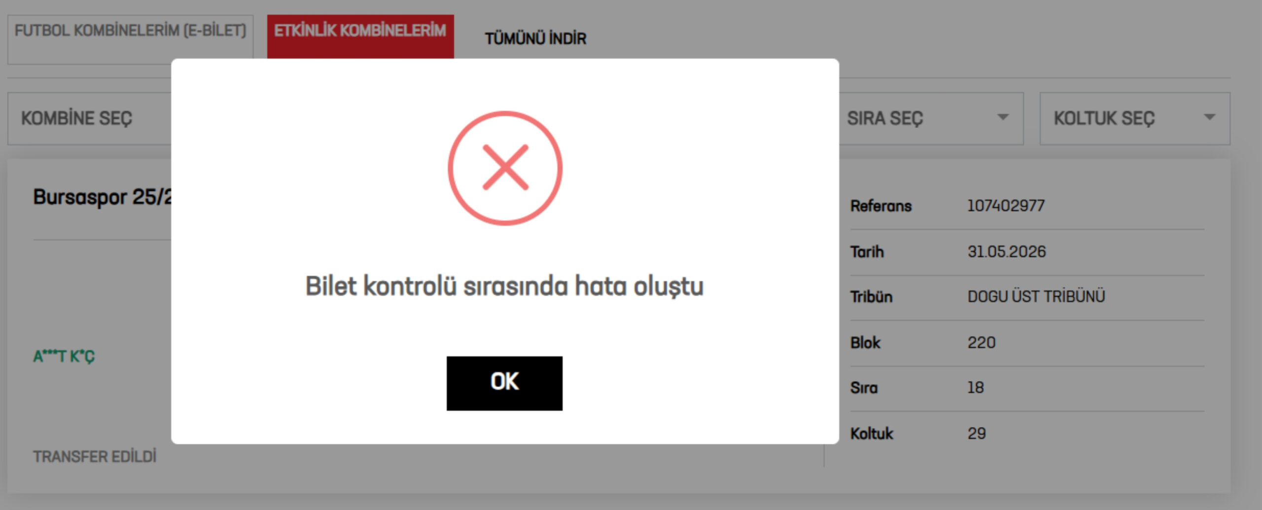 Paso uygulamasına giren taraftarlar “Transfer Edildi” ibaresiyle karşı karşıya kalarak satın aldıkları biletleri görüntüleyemiyorlar. Bursaspor Kulübü resmi yayın organları aracılığıyla bir bilgilendirme mesajı yayınlasa da buradaki talimatlarla sonuca ulaşamayan taraftarlarımızın sayısının bir hayli fazla olduğu öğrenildi.