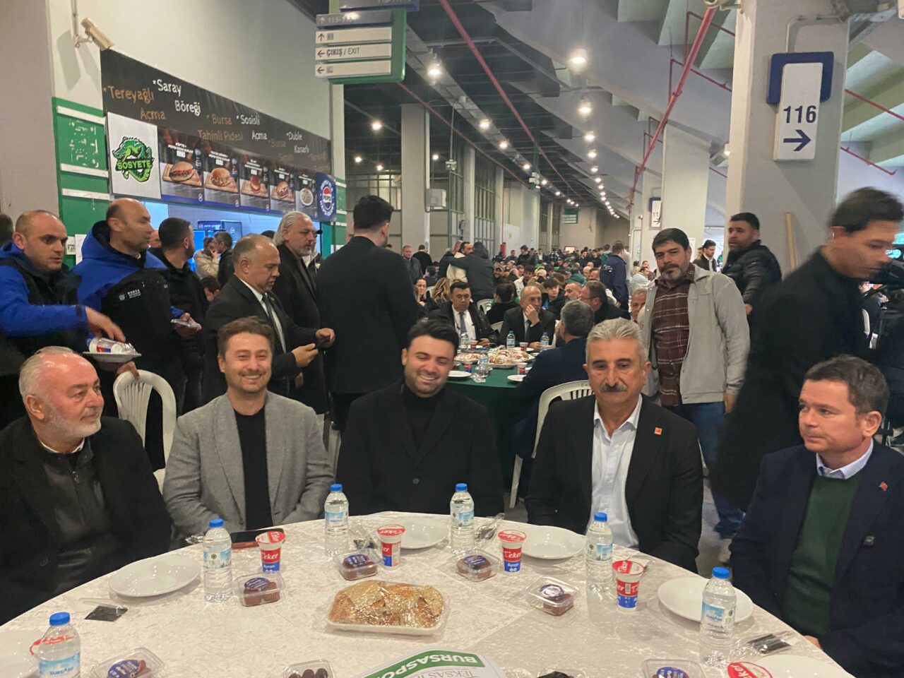 Atatürk Spor Kompleksi Matlı Stadyumu’nda yapılan iftara Bursaspor Başkanı Enes Çelik, Futbol Şube Sorumlusu Coşkun Yavuz, Bursaspor Basketbol Başkanı Sezer Sezgin, Başkan Mustafa Bozbey’i temsilen Mustafa Gazioğlu, Osmangazi Belediye Başkanı Erkan Aydın, Yıldırım Belediyesi Başkan Vekili Selim Yolgeçen, CHP İl Başkanı Nihat Yeşiltaş ile siyasi parti temsilcileri ve binlerce taraftar katılırken, Bosna’da bulunan Büyükşehir Belediye Başkanı Mustafa Bozbey de videolu olarak taraftarlara seslendi.