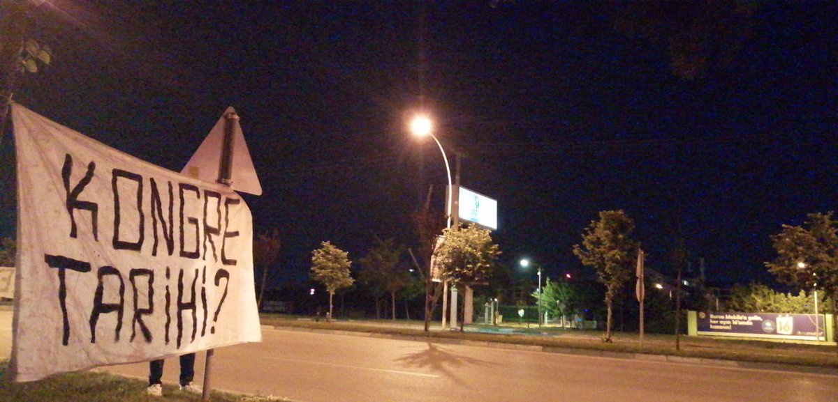 Teksas Ultras “Kongre tarihi?” “Hatalardan ders aldım” “Yeter istifa” “Para verdim” “Kum çakıl” “İyi niyet” “Benzinlik???” pankartları ile istifa baskısı yaptı.