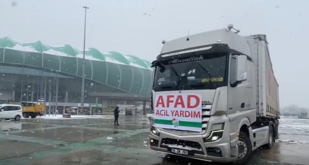 Bursa Büyükşehir Belediye Stadyumu‘nda gerçekleşen yardım organizasyonunda yardım tırları dolmaya devam ediyor. Bu sabah 17. Teksas yardım tırı afet bölgesine doğru yola çıkarken, akşam saatlerinde de 18. tır stadyumdan yükünü alarak yola çıktı.