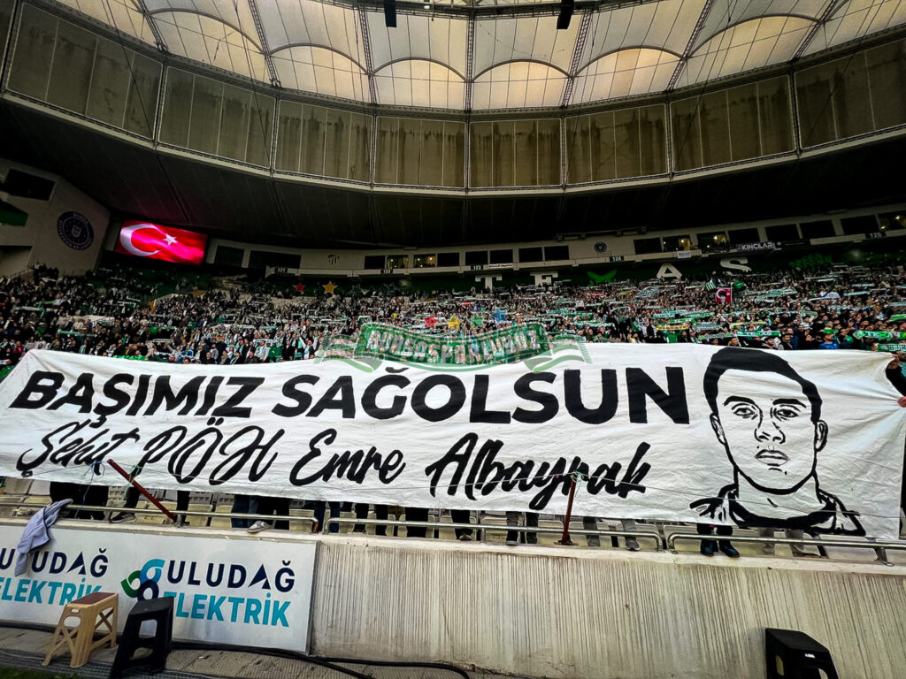 Teksas tribününde iki ayrı pankart dikkat çekti. İstanbul Çekmeköy’de bir apartmana düzenlenen uyuşturucu operasyonu sırasında özel harekât ekiplerine açılan ateş sonucu şehit olan Polis Memuru Emre Albayrak için özel bir pankart hazırlandı. Pankartta, “Başımız Sağ Olsun. Şehit PÖH Emre Albayrak” ifadeleri yer aldı.