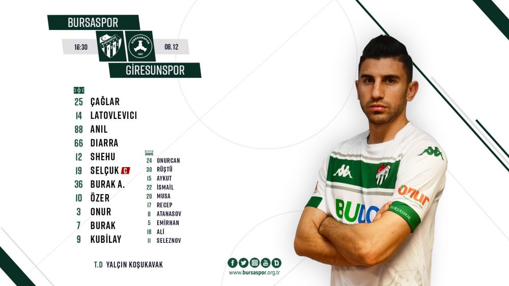 Bursaspor’un Timsah Arena’da oynayacağı Giresunspor maçı ilk 11’i belli oldu.