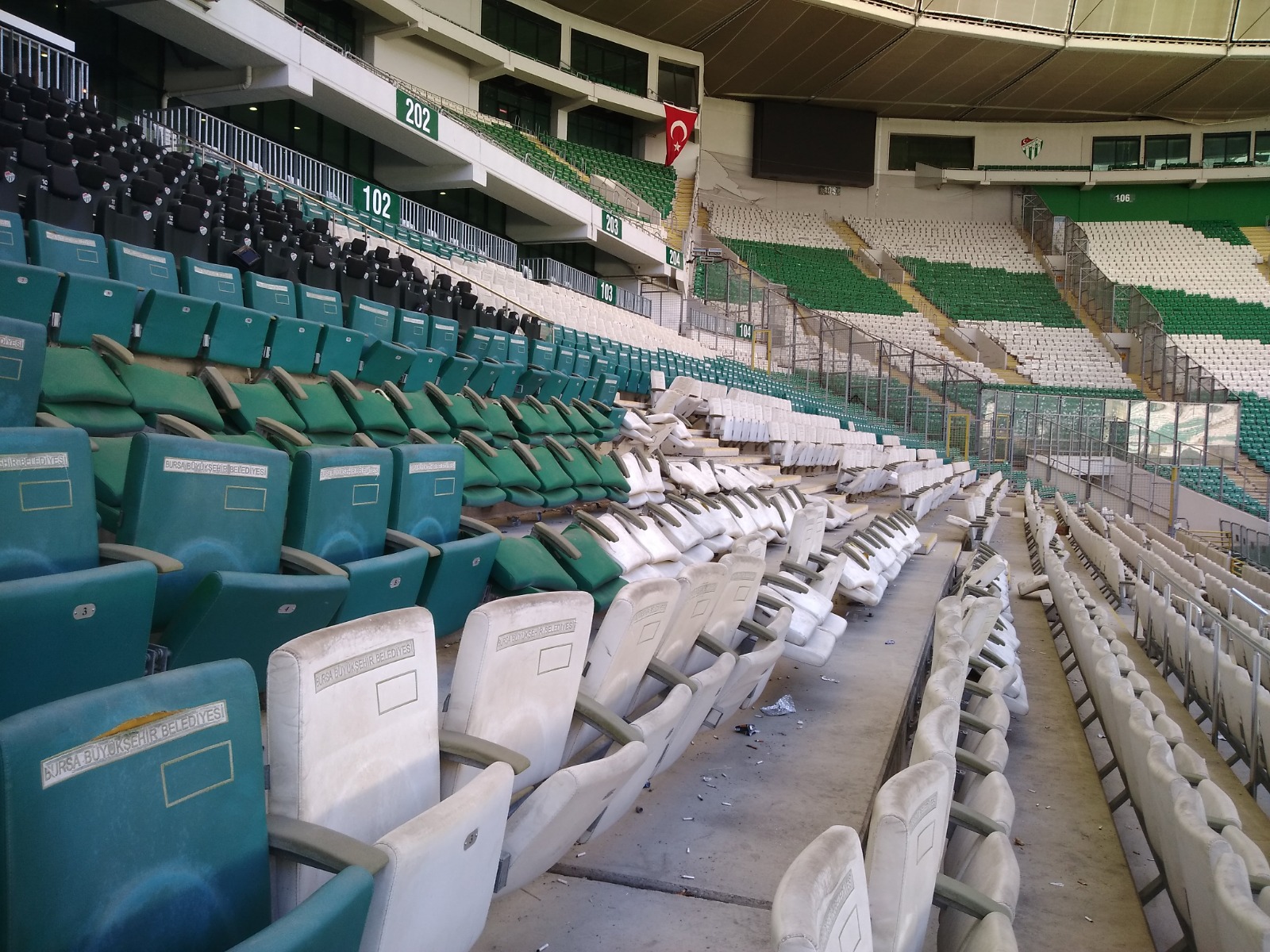 Bursaspor Kulübü yetkilileri, TFF Gözlemcisi ile birlikte yaptıkları değerlendirmede, Fatih Karagümrük taraftarlarının yer aldığı Bursaspor 1963 tribünün koltukları, televizyon ekranları, VİP tribünündeki koltukların büyük bir bölümü, Sakaryaspor taraftarlarının yer aldığı tribünlerde ile koltukların büyük bölümü kırıldı.