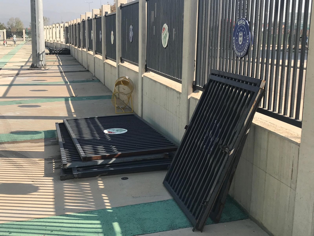 Bursaspor Kulübü Başkanı Ali Ay‘ın her zaman dile getirdiği Timsah Arena etrafındaki bariyerlerinin kaldırılması yönündeki ısrarının ardından farklı bir uygulamaya geçildi.