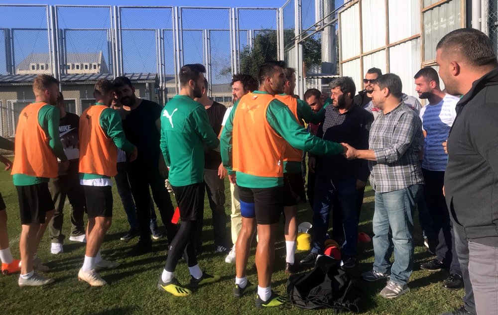 Futbolcularla grup adına konuşan Mehmet Güzelsöz, ‘Biz sizin mücadelenizden memnunuz, terinizin son damlasına kadar savaşıyorsunuz, bu mücadeleyi artık sonuca ulaştıracağınızdan eminiz. Biz sizin her zaman yanınızdayız, her şartta sizi desteklemeye devam edeceğiz. Biz sizlere güveniyoruz‘ dedi.