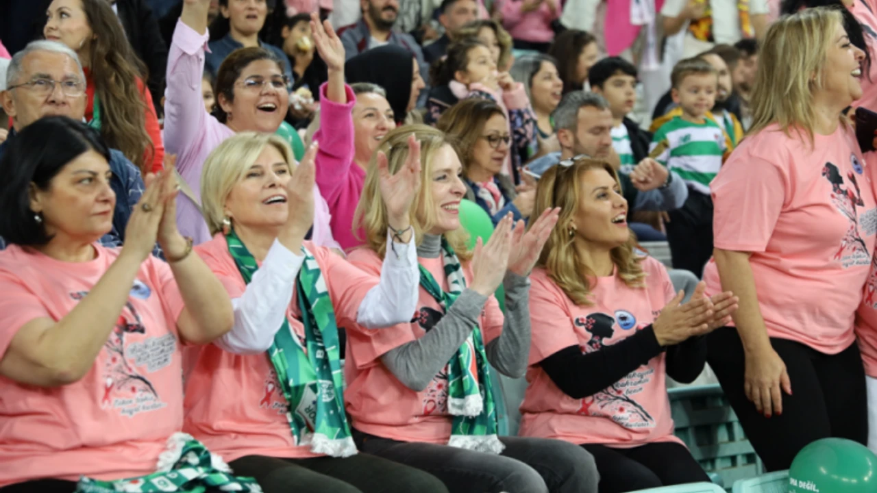 Bursa Büyükşehir Belediyesi, "Meme Kanseri Farkındalık Ayı" kapsamında yaklaşık 100 kadını pembe tişörtlerle Bursaspor-Menemen Belediyespor maçında buluşturdu. Başkan Mustafa Bozbey'in eşi Seden Bozbey de tribünde kadınlarla birlikte farkındalık mesajı verdi.