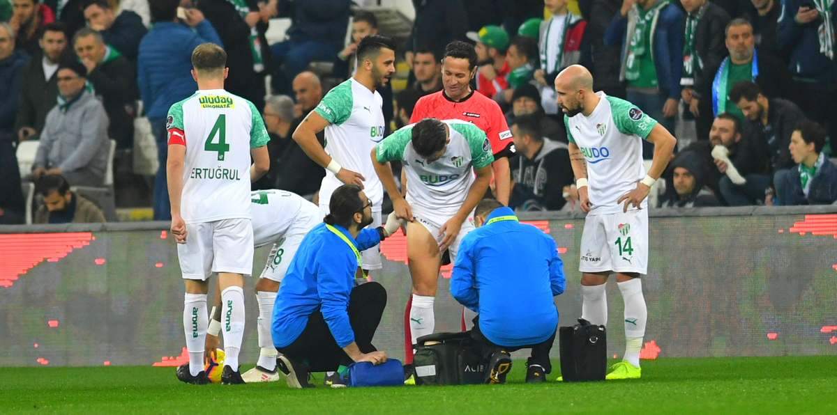 Bursaspor ve Konyaspor arasında oynanan Spor Toto Süper Lig 20. hafta müsabakasının ilk dakikalarında bir sakatlık şoku yaşandı.