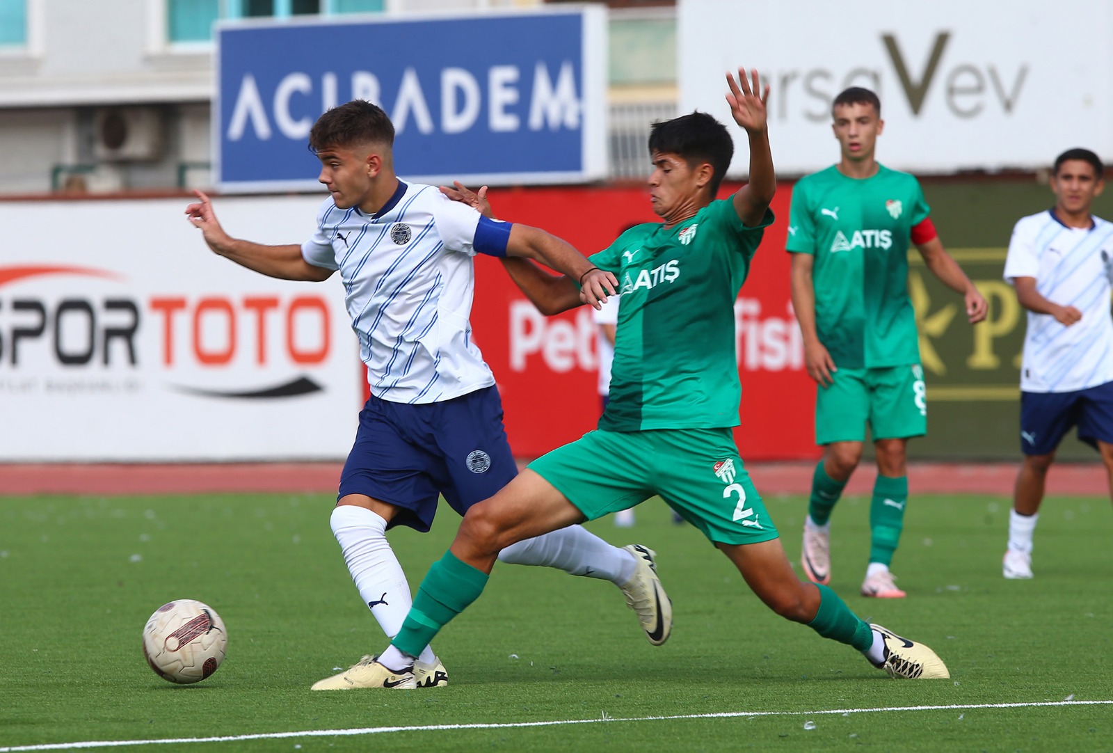 Akademi U 17 A Ligi’nde mücadele veren Bursaspor, İstanbul Dereağzı Lefter Küçükandonyadis Tesisleri sahasında oynanan mücadelenin ilk yarısı 3. dakikada Feherbahçe‘den Onur ve 23. dakikada Bursaspor‘dan Mehmet Çetin’in karşılıklı golleriyle 1-1 sona erdi.