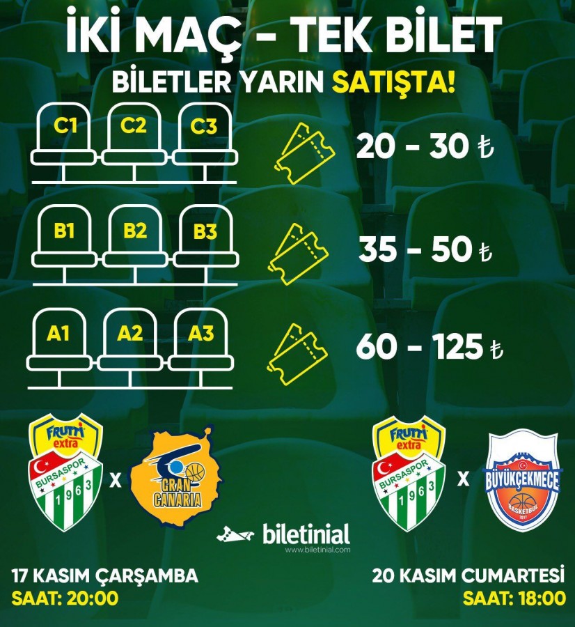 Kulübün sosyal medya hesabından yapılan paylaşımda “Takımımızın çarşamba Gran Canaria ve cumartesi Büyükçekmece ile oynayacağı karşılaşmaların biletleri yarın satışa çıkıyor.