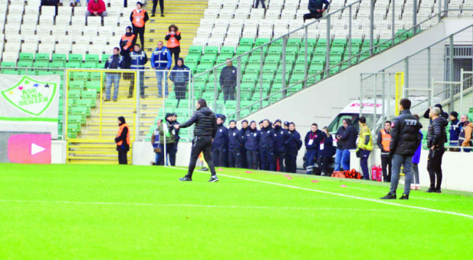 Karşılaşmanın ilk yarısında takımın geri pas yapmasına sinirlenen teknik direktör İbrahim Üzülmez önce elindeki su şişesini yere fırlattı.